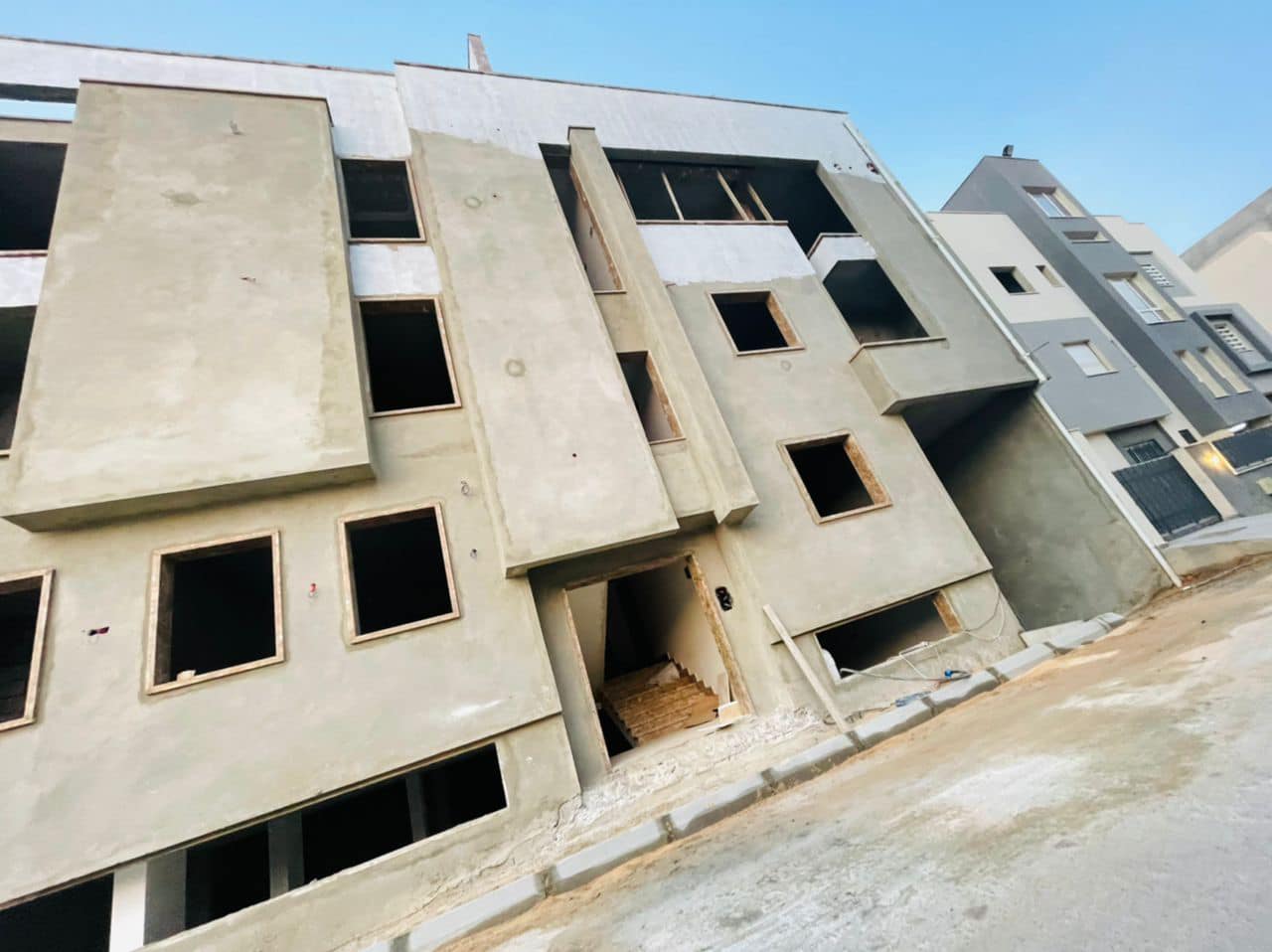 يتكون المشروع من عمارة بها 6 شقق سكنية علي ارض 400 متر تقريبا عبارة عن 3 طوابق وملحق وبدروم بجمالي مساحة 1.700 متر مربع مسقوف ، مصممه علي افضل الطرز المعمارية الحديثة لحساب شركتنا .